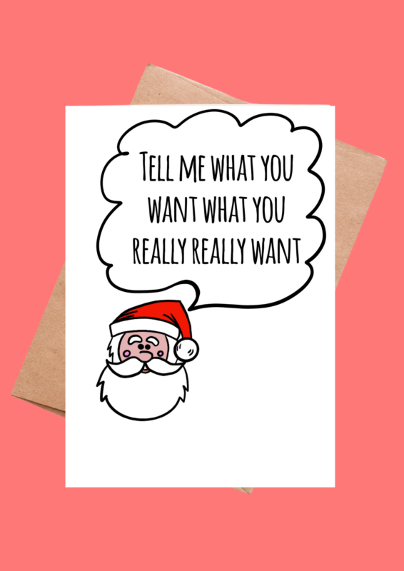“Tell me what you want what you really really want” Santa Christmas Card